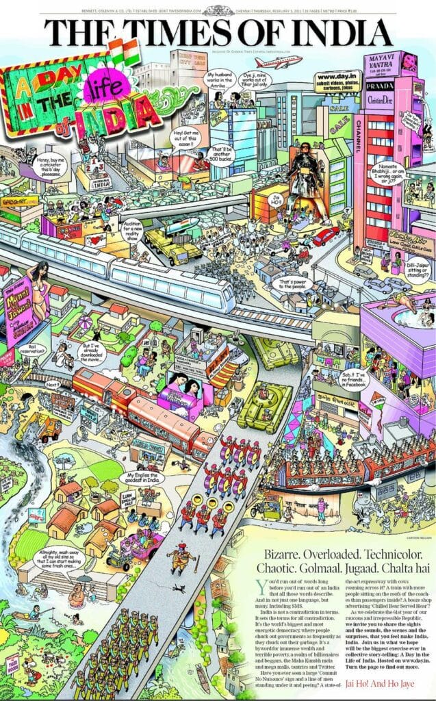 Enterprise Nexus was the agency handling the creatives in the late 1990s. The first print advertisement was released with the line “A Day in the Life of India” written by Mohammed Khan. It had a sardonic approach to all the happenings in the country, spoofing the problems faced by the people. Hidden was the message that the change which people desire has to come from the people themselves.
