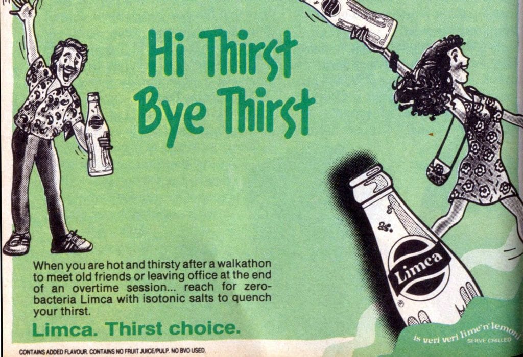 In the 80s, Limca’s thirst-quenching and the youthful image remained. A young Salman Khan as a footballer promoted Limca, enjoying a victory with it.