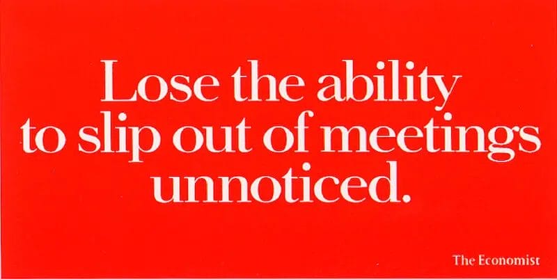 The campaign’s central premise – that reading The Economist helps you advance – was never the most enticing of ideas. However, Abbott’s favourite advertisement, the first, set the tone with its lighthearted wit and notion of the brand as a sort of elite club.