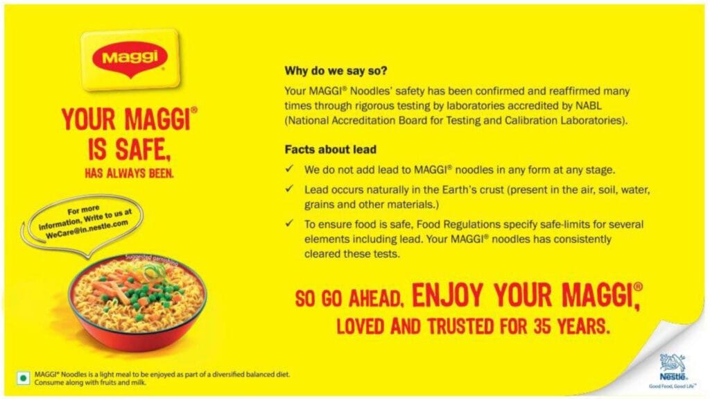 In addition, Maggi assured viewers and followers on social media with the introduction of the “Maggi 2-Minute Masala Noodles Safety Campaign” that the noodles had undergone extensive testing and were safe to eat.