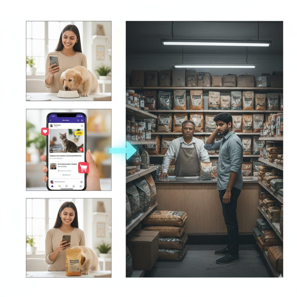 Previously, the pet care buying journey was fragmented. Discovery happened on social media, consideration on marketplaces, and purchase on brand websites or pet stores.